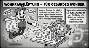Moderne Gebäude sind heute energetisch hochwertig gedämmt und weitgehend luftdicht errichtet. Dieser Effekt spart zwar Heizkosten, unterbindet jedoch manchmal den hygienisch notwendigen Mindestluftwechsel durch natürliche Infiltration. Um die Gesundheit der Bewohner zu schützen und Feuchte- oder Schimmelschäden zu vermeiden, ist eine fachgerechte Planung der Belüftung / der Feuchteabfuhr daher unerlässlich.