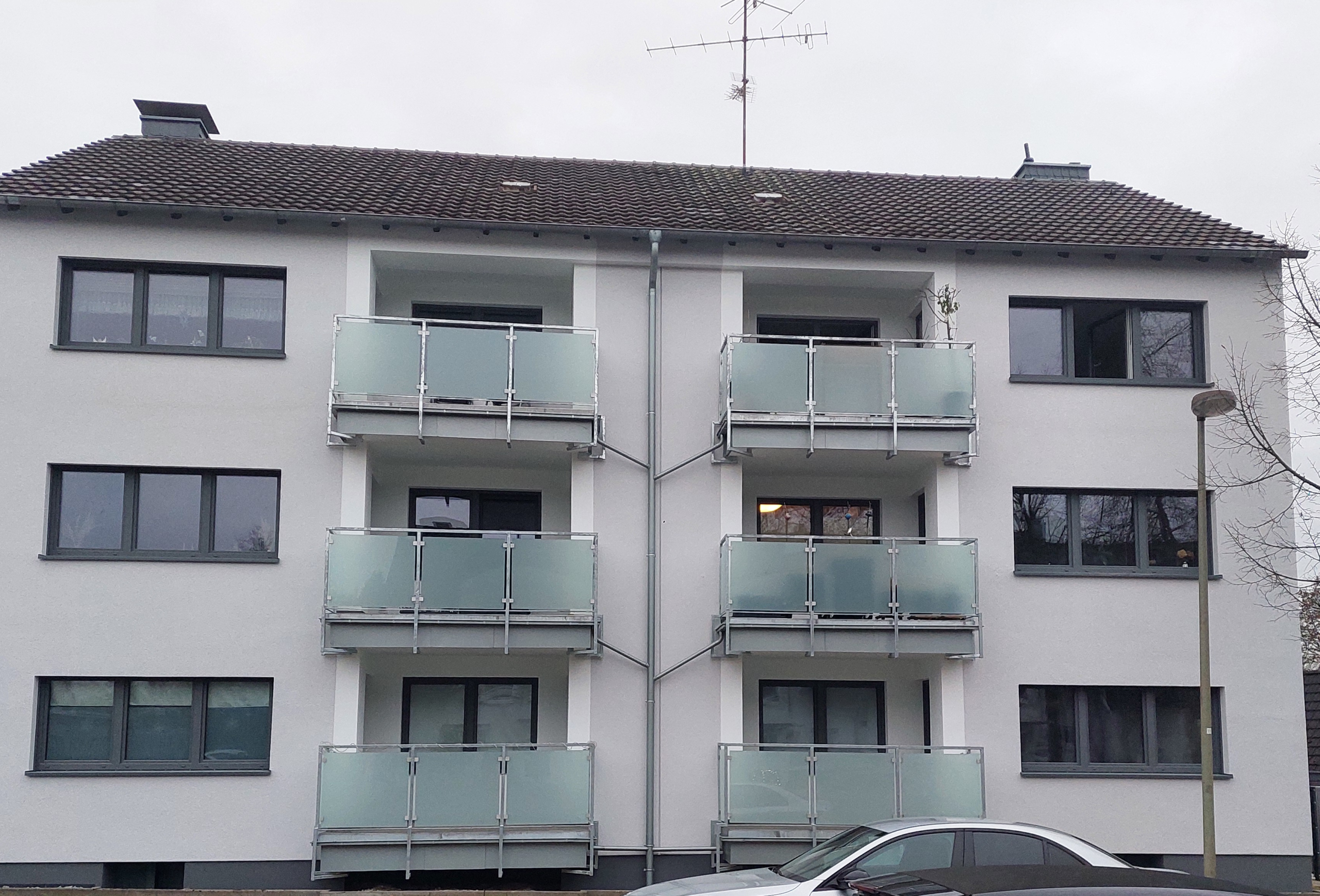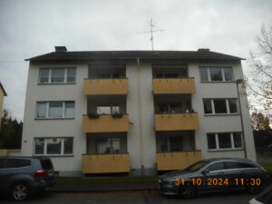 Umsetzung im Rahmen eines ISFP geförderter Einzelmaßnahmen BAFA BEG EM – an einem Mehrfamilienhaus. Fertigstellung 12-2025. Der Zuschuss „Energetische Fachplanung“ konnte bei dieser Maßnahme voll ausgeschöpft werden. Vorher Nachher