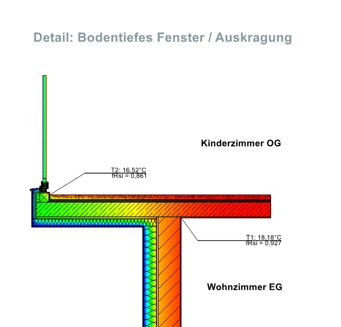 Die Berechnung stellt sicher, dass die Temperaturen im Innenraum stets im sicheren Bereich bleiben – fRsi-Wert.
